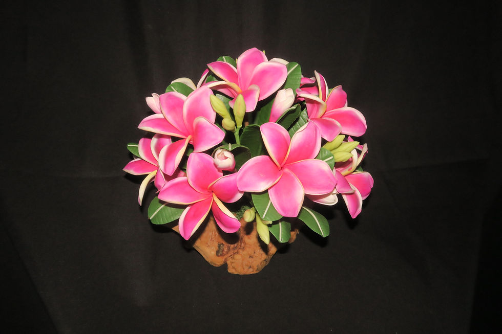 Pink Yellow Red Center Plumeria 3 flower Arrangement